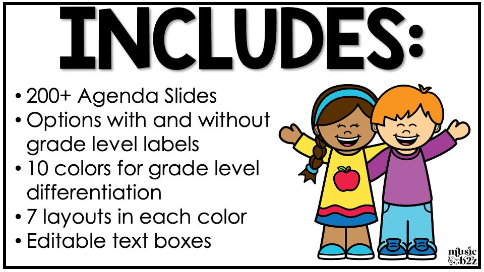 Keeping yourself organized has never been easier. Customize the slides with your personal notes, and you'll always be one step ahead, ready to conquer the day with a well-prepared music class.