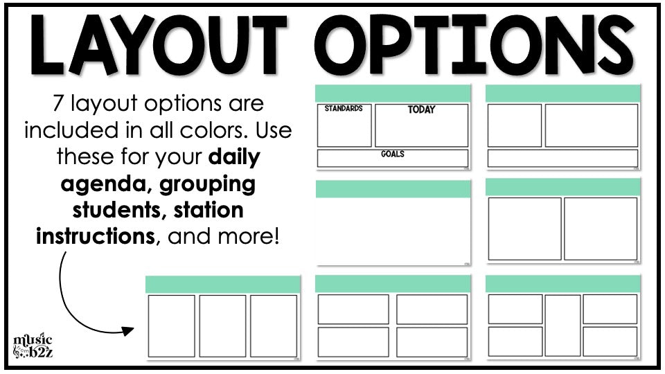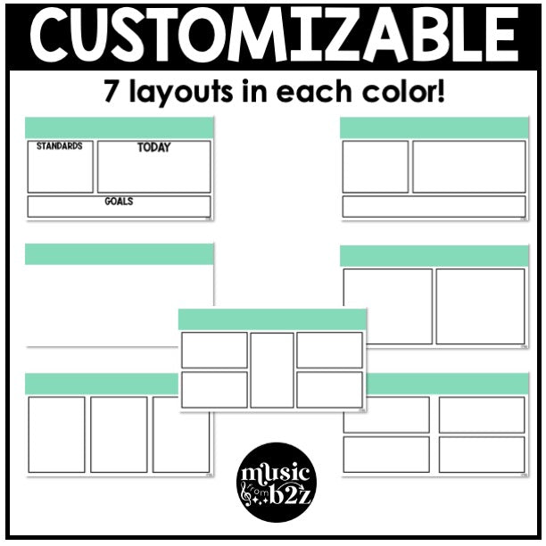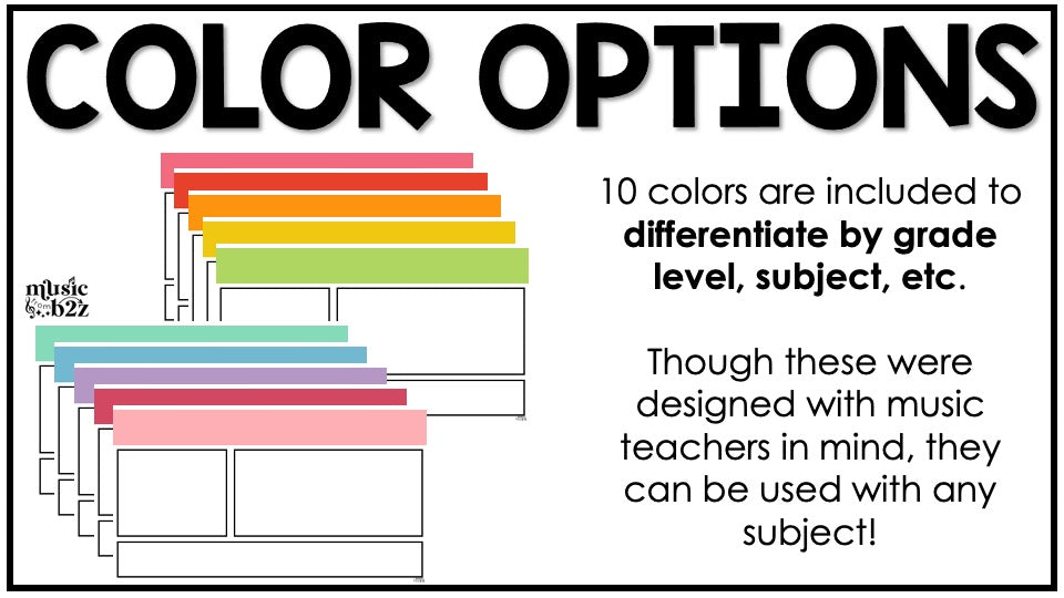 - Each style includes 10 different grade levels/colors with 7 layouts each