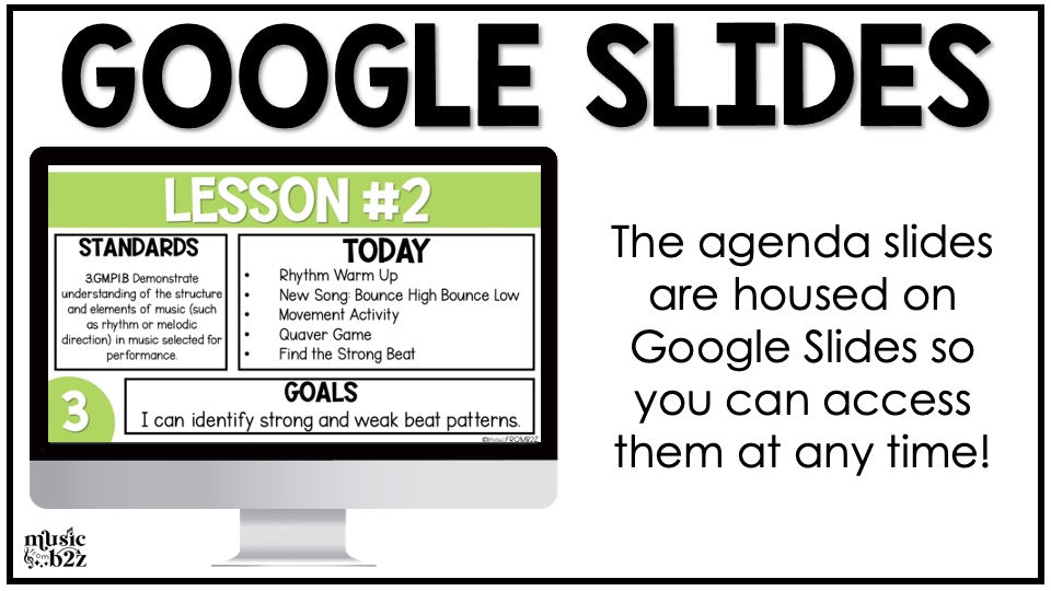 These slides are all about customization. We understand that every music teacher's style is unique, so we've made sure these slides are fully editable. Simply use Google Slides to personalize the agenda slides to perfectly match your teaching approach and classroom lessons.