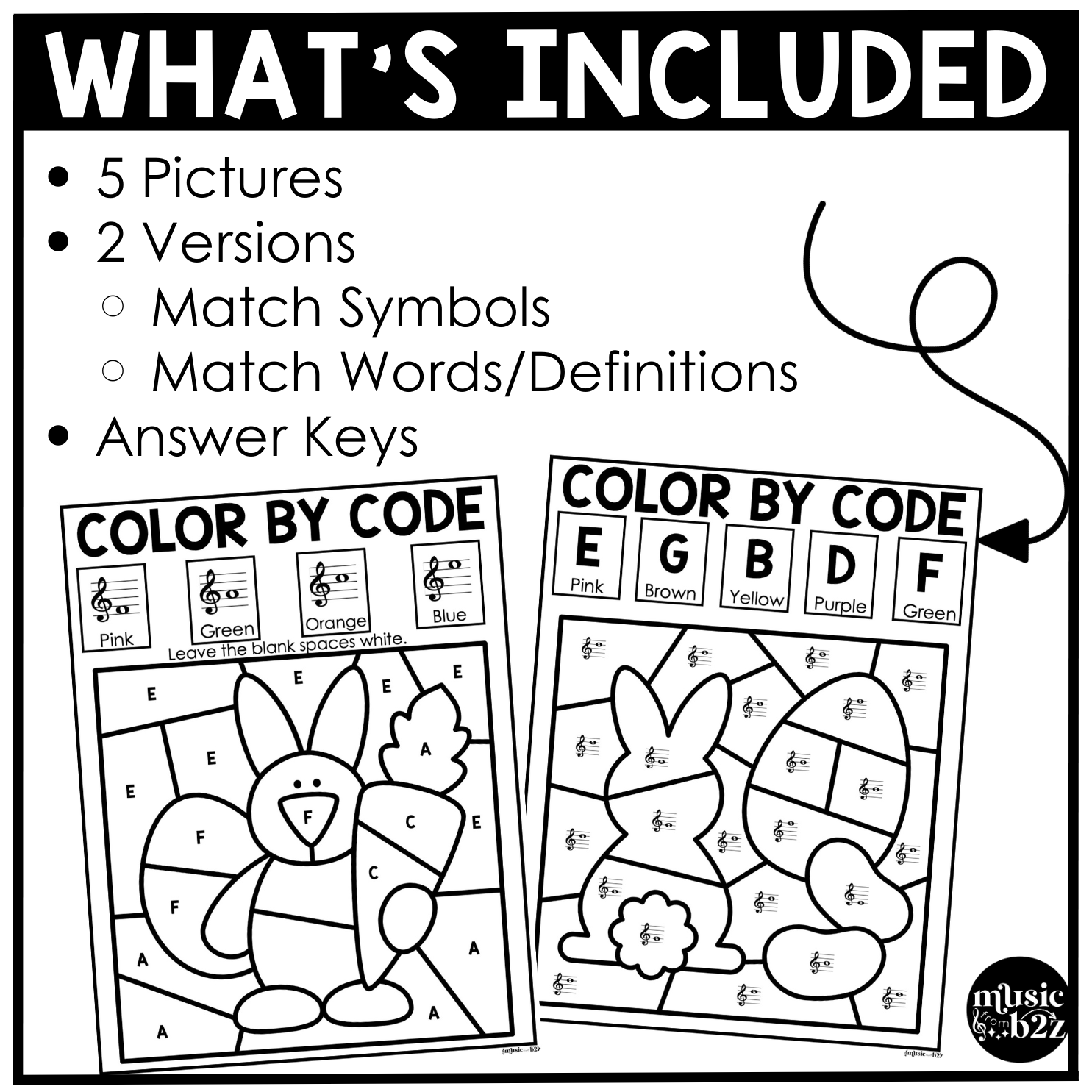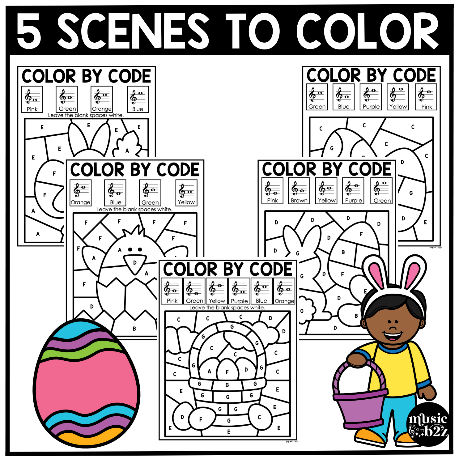 As students work through each music color by note page, they’ll match treble clef notes to the correct color. The finished product not only shows off a fun Easter picture but also gives you an easy way to check for pitch-reading accuracy.