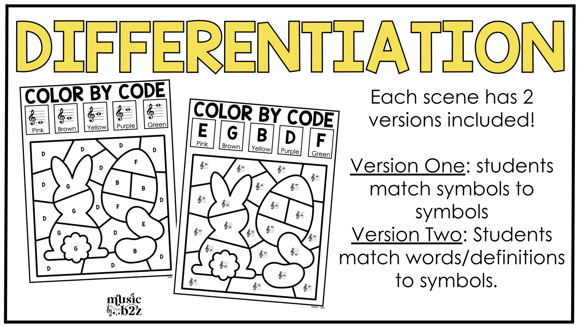 Looking for a fun and easy way to reinforce pitch reading this Spring? These Easter Music Coloring Pages focus on matching treble clef pitches, giving your students extra practice while keeping them engaged with a creative activity. Each page has a Easter-themed design that students bring to life as they correctly identify notes on the staff. It’s the perfect mix of music worksheets and seasonal fun!