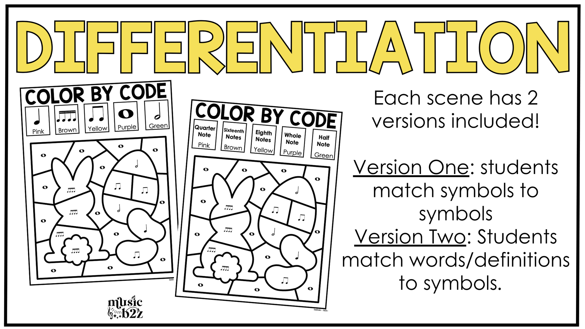 Looking for a simple way to add some seasonal fun to your lessons this spring? These Easter Music Coloring Pages are a classroom favorite because they combine rhythm practice with the creativity of coloring. Students get to practice reading and identifying rhythms while creating fun, Easter-themed pictures, and you get an activity that’s easy to prep and keeps kids engaged.