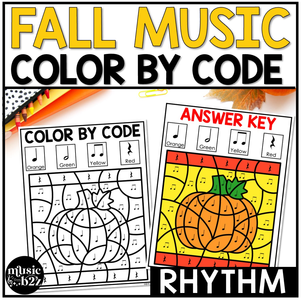 Fall Music Coloring Color by Rhythm Fall Music Worksheets Music Color by Note