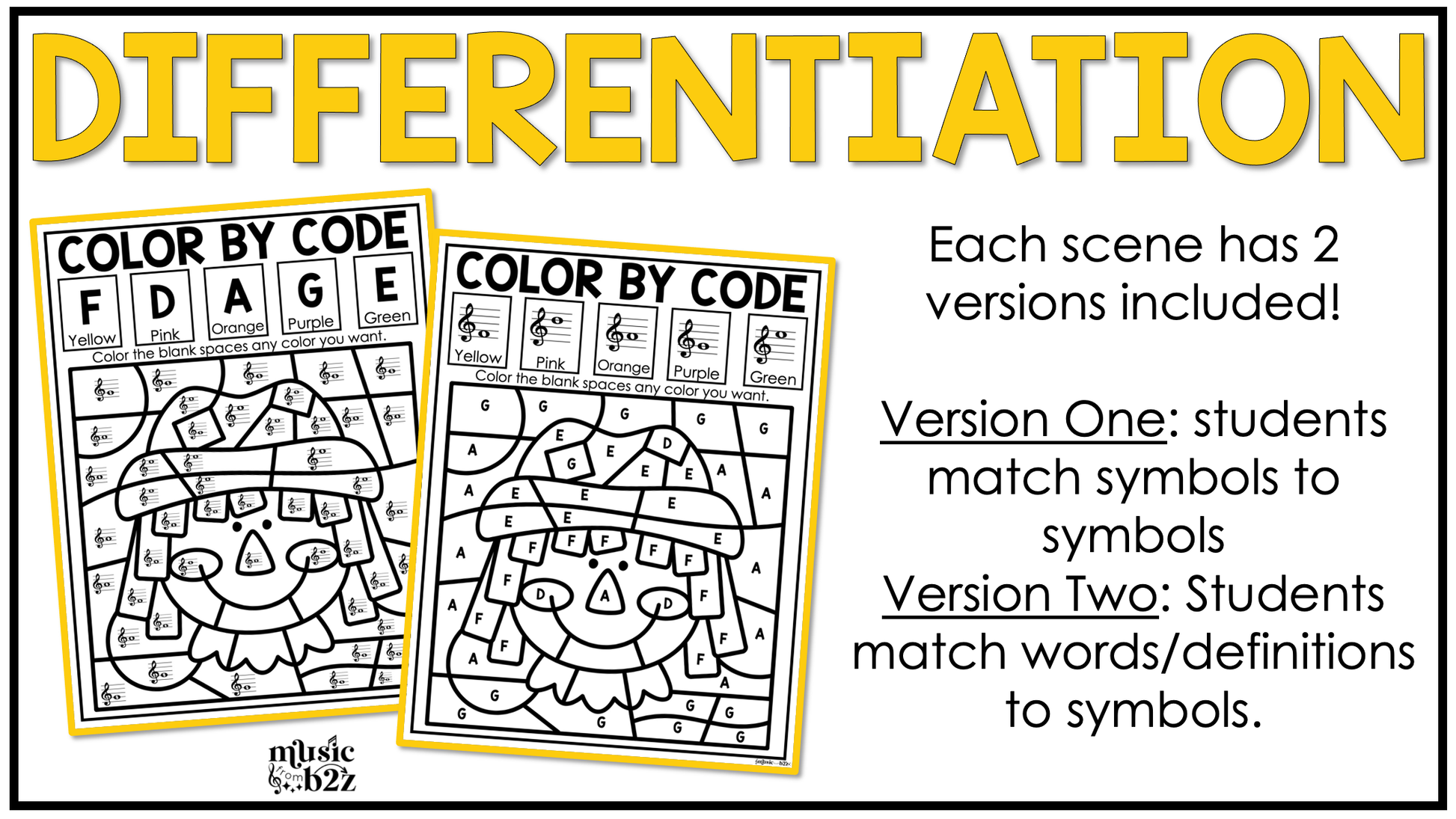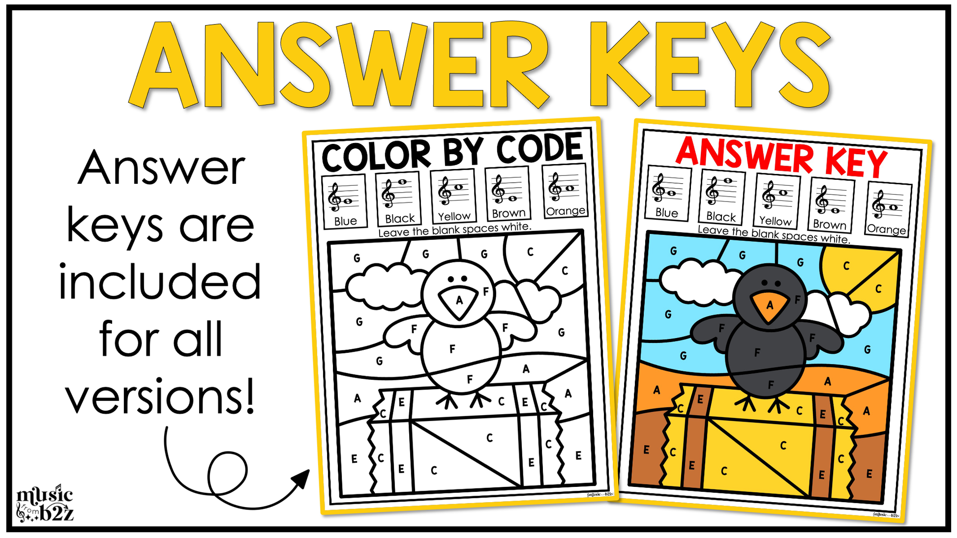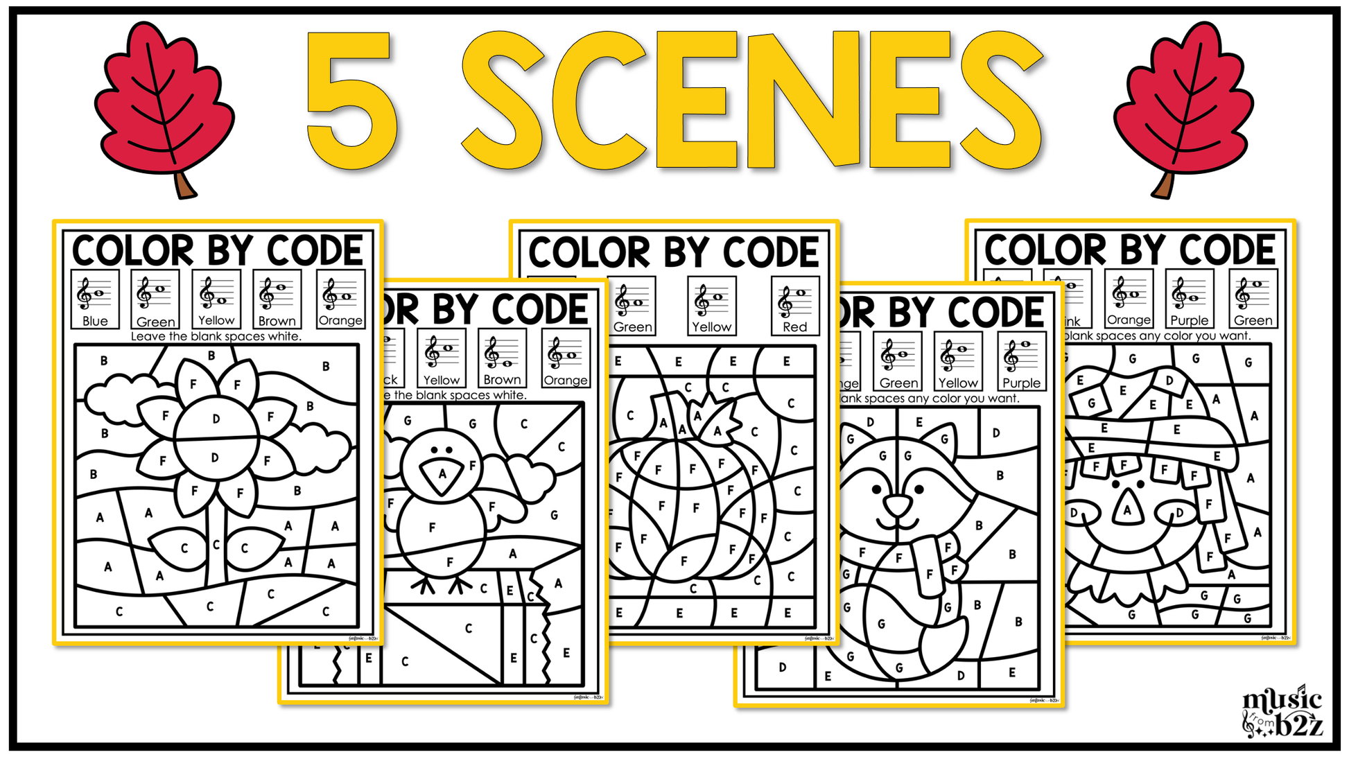 As students work through each music color by note page, they’ll match treble clef notes to the correct color. The finished product not only shows off a fun fall picture but also gives you an easy way to check for pitch-reading accuracy.
