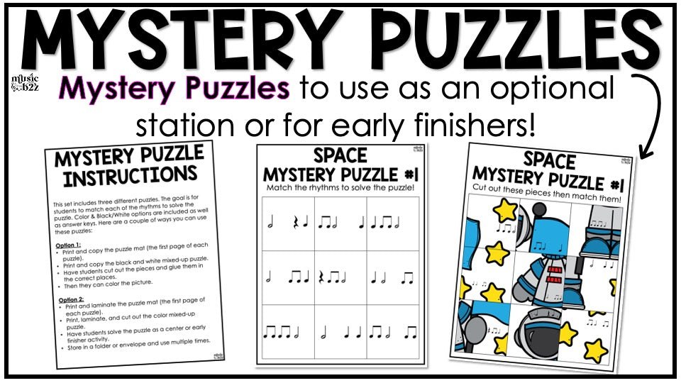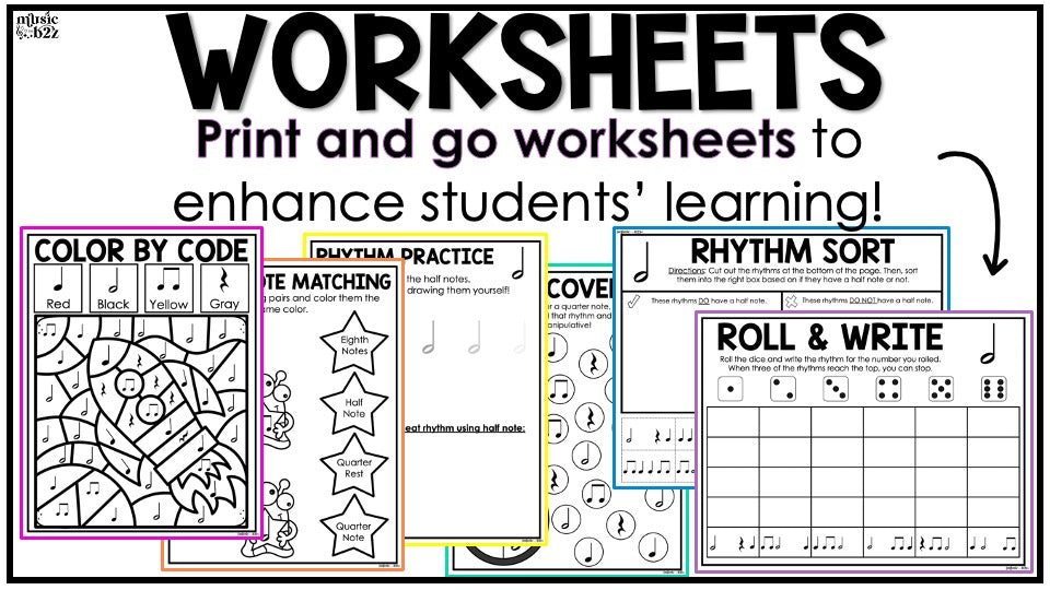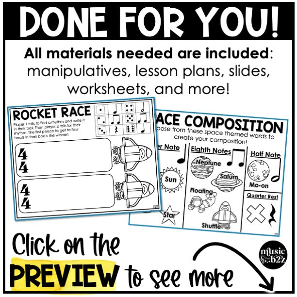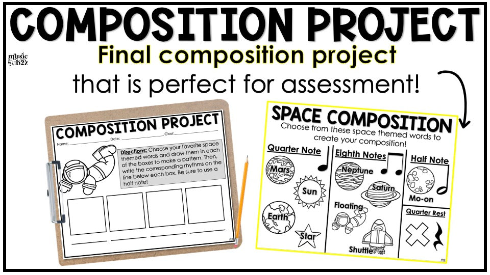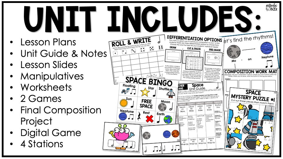 Throw out your boring worksheets and replace them with these engaging and interactive space themed worksheets! These worksheets include everything from practicing standard notation to creating compositions.