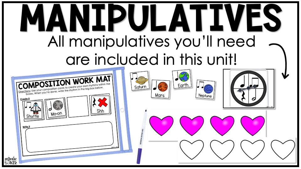 Learning is best when it's hands-on! That's why this resource includes manipulatives that your students will love using to create rhythms! The campsite theme continues as they use quarter notes, quarter rests, and eighth notes to make rhythmic patterns.