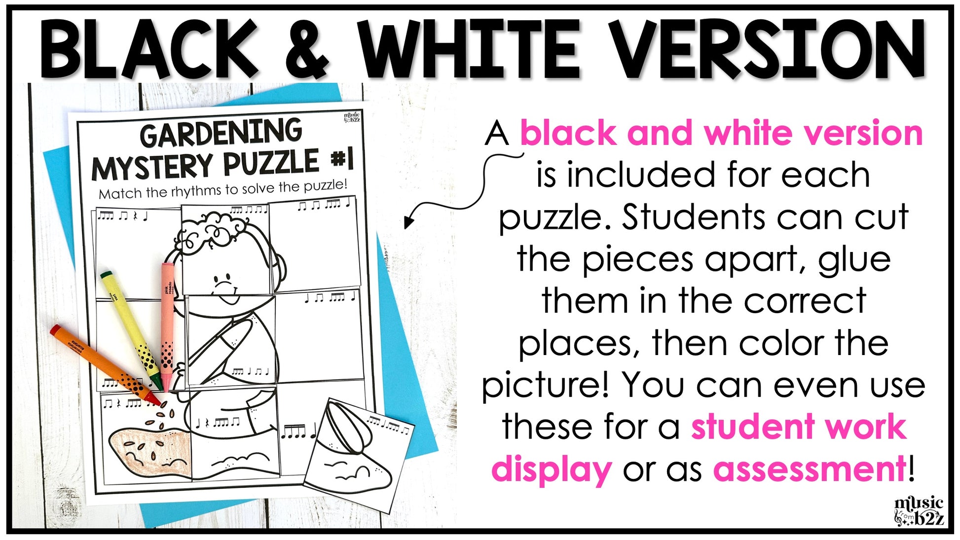 - Color and Black/White Versions: The color version is ideal for laminating and using over and over again in music centers, while the black and white version gives students the chance to cut apart, glue, and color their own puzzle, adding a personal touch to the activity.