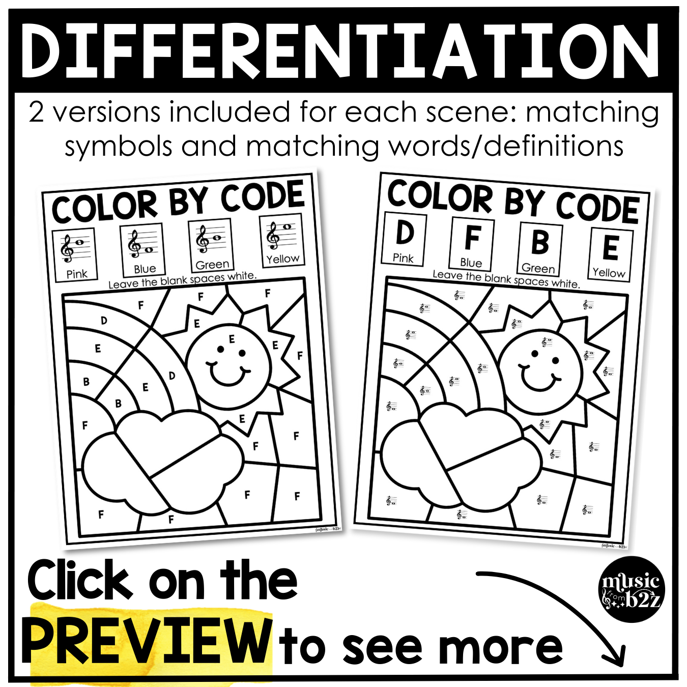 As students work through each music color by note page, they’ll match treble clef notes to the correct color. The finished product not only shows off a fun Spring picture but also gives you an easy way to check for pitch-reading accuracy.