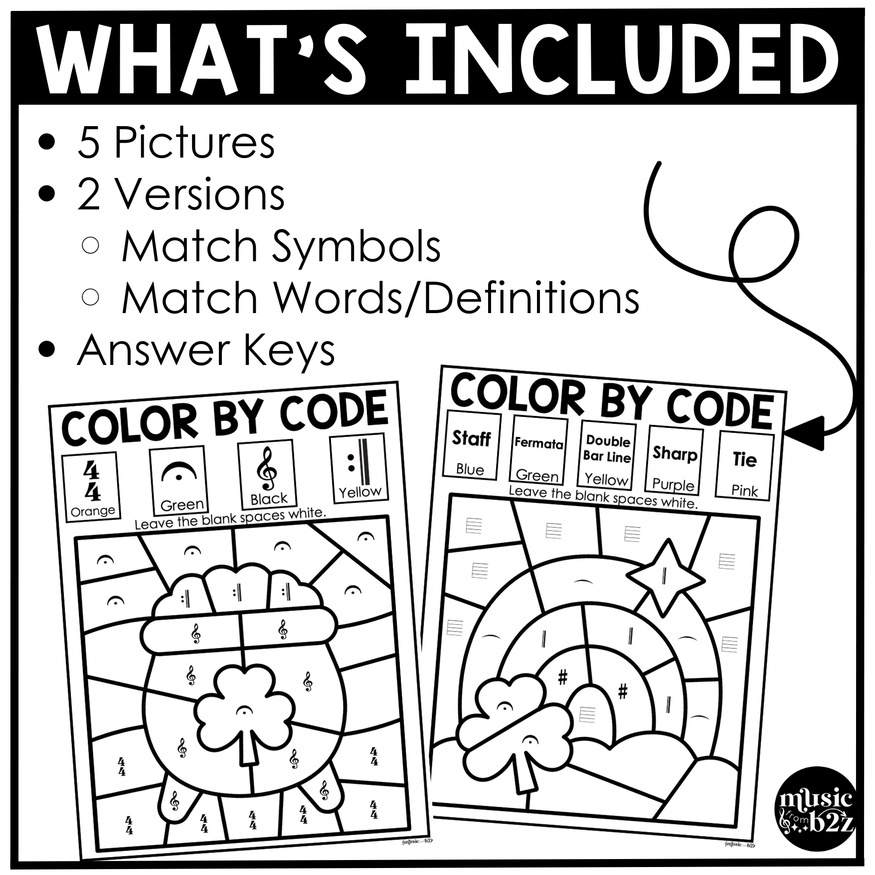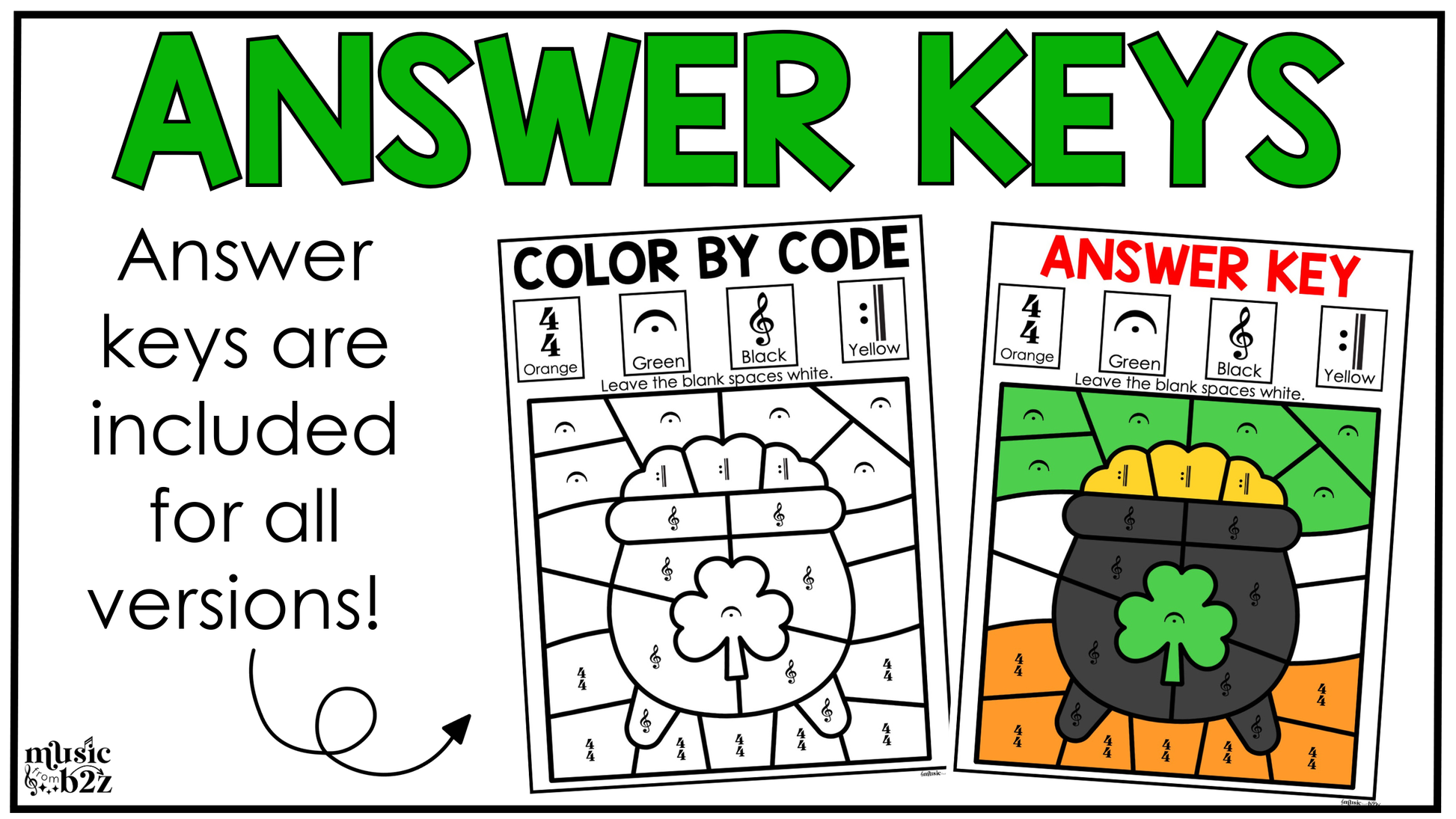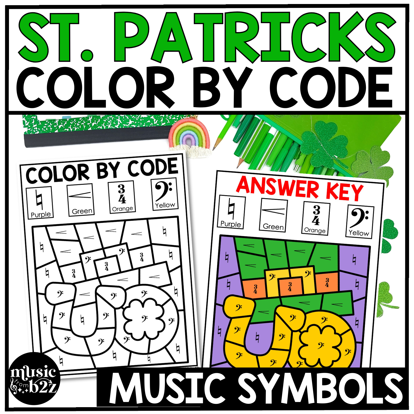 Teachers love how these music color by note pages save time while still reinforcing important concepts. The St. Patrick's Day theme makes it exciting for students, while the coloring aspect keeps them focused and engaged.