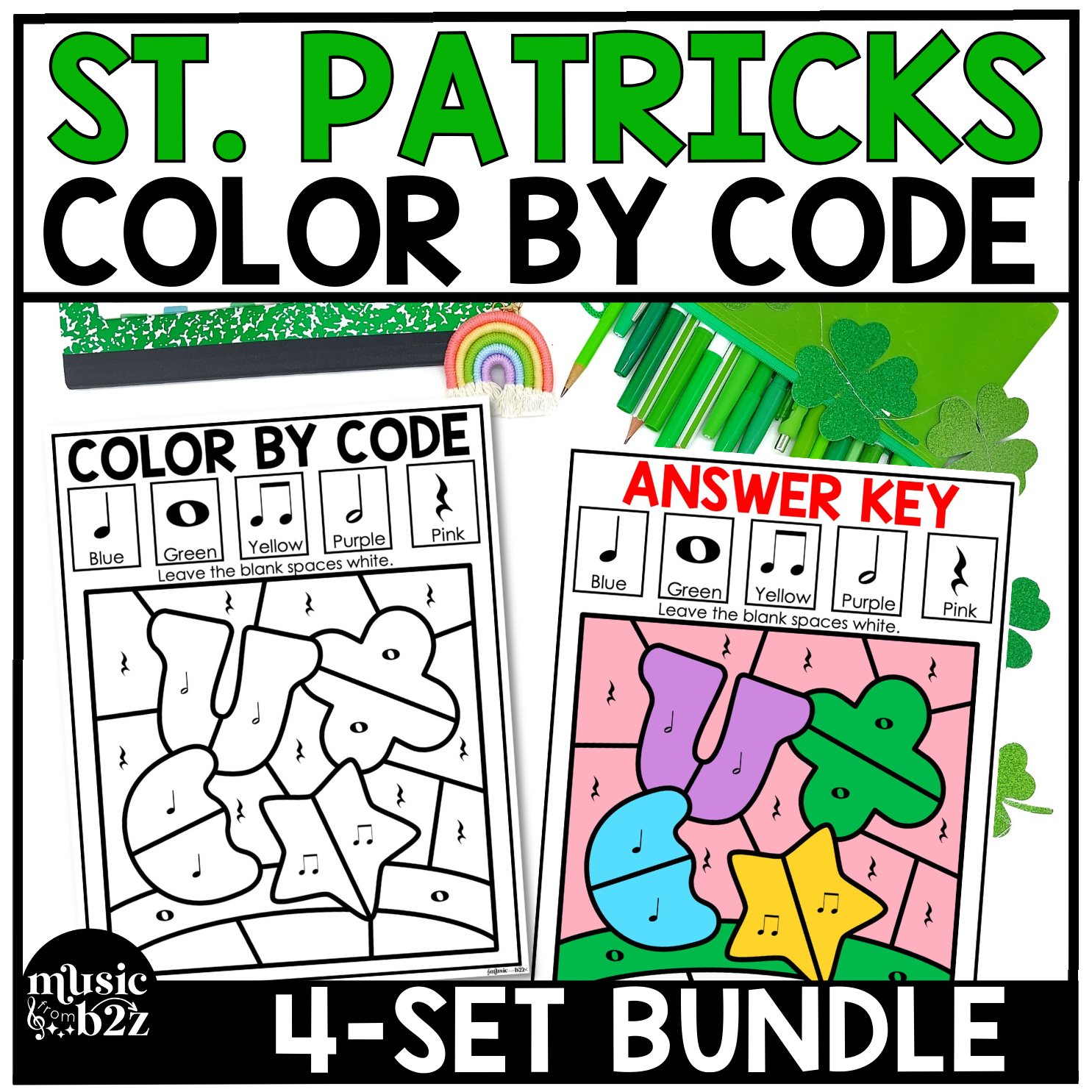 St. Patrick's Day Music Coloring Page BUNDLE Color by Note Music Worksheets