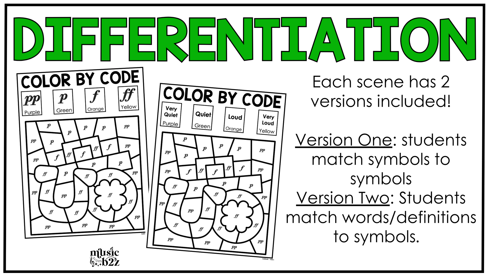 - Dynamics Color by Note Pages – review dynamic markings like p, mp, mf, f, crescendo, and decrescendo