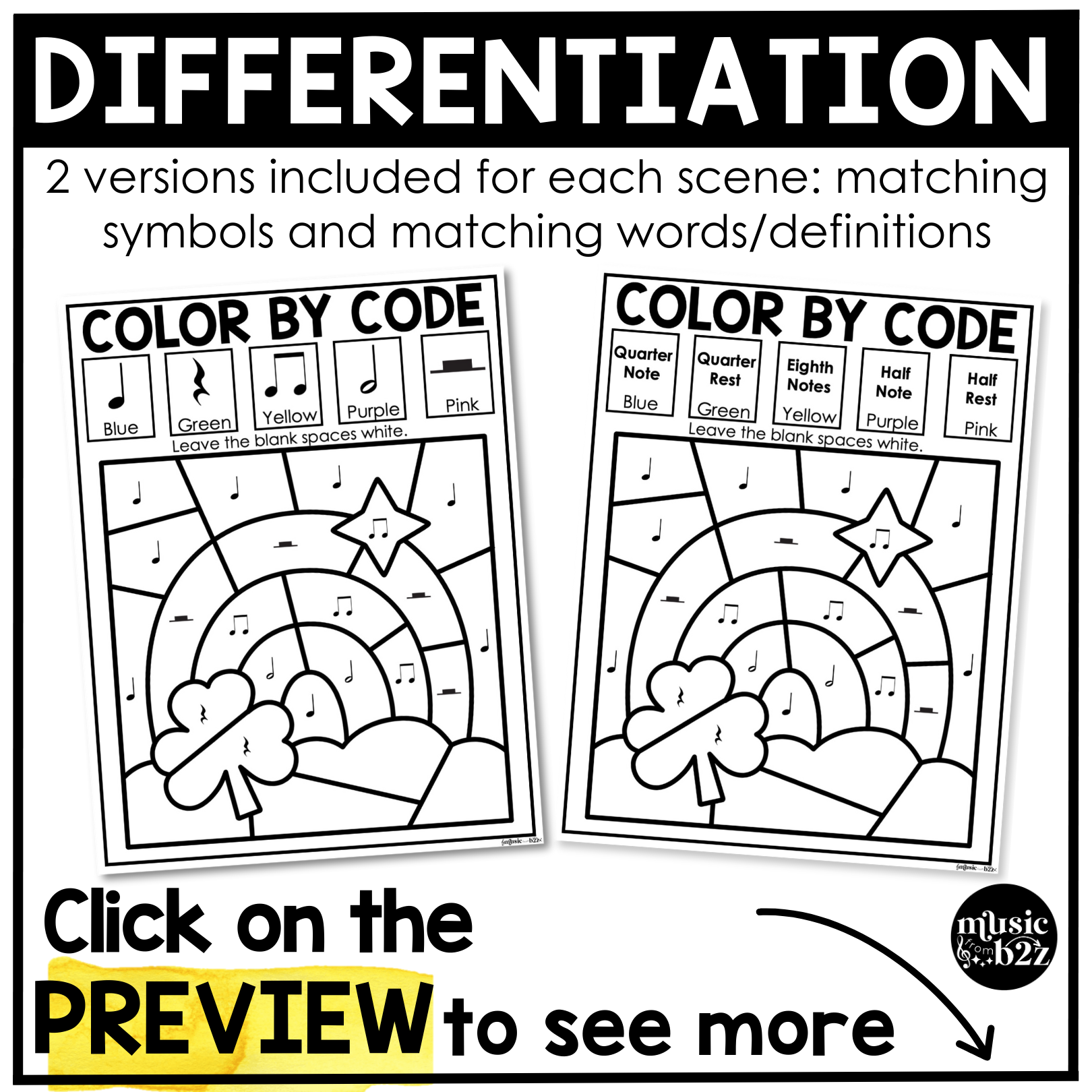 St. Patrick's Day Music Coloring Pages Rhythm Worksheets Music Color by Note