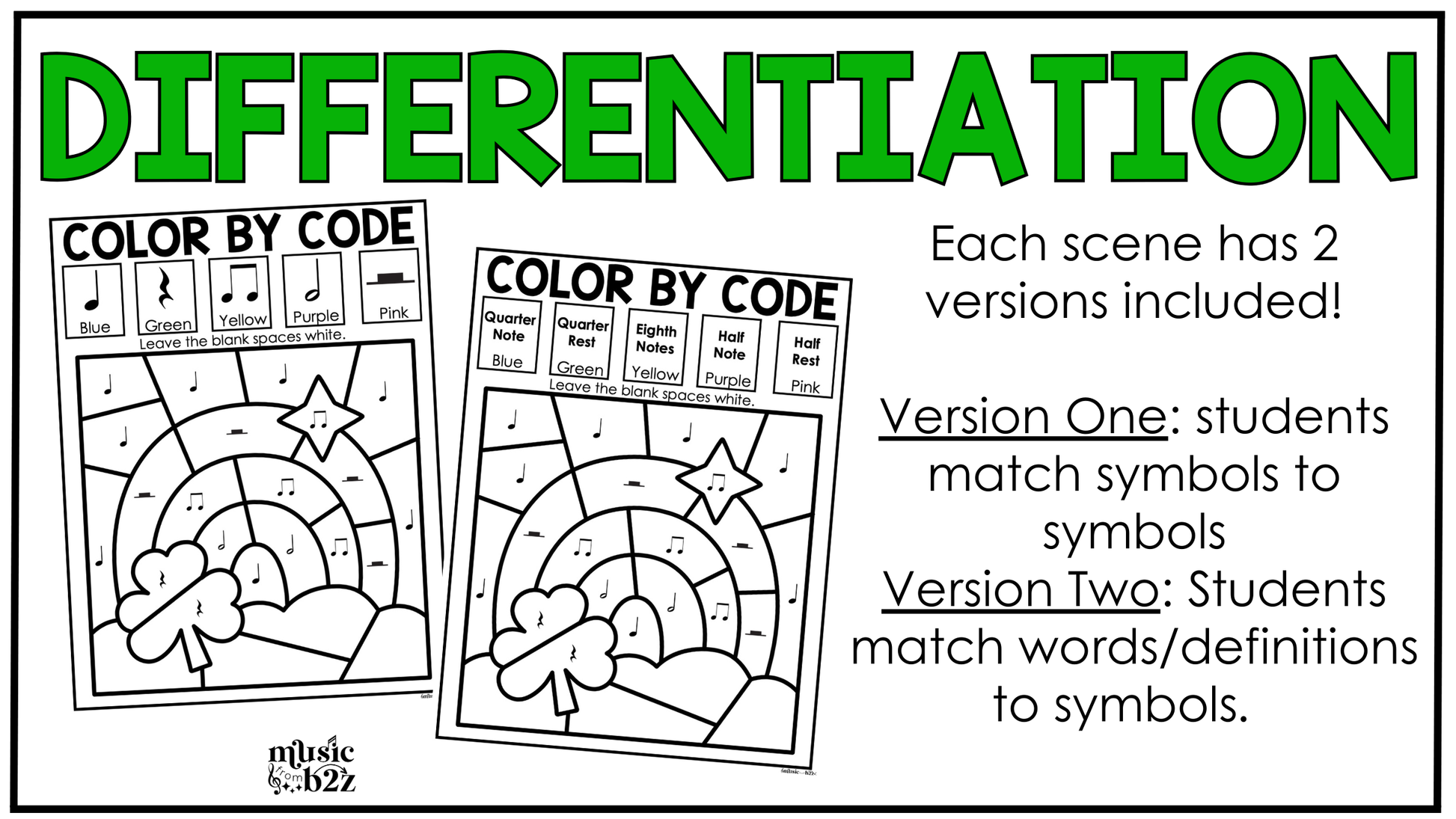 Looking for a simple way to add some seasonal fun to your lessons this March? These St. Patrick's Day Music Coloring Pages are a classroom favorite because they combine rhythm practice with the creativity of coloring. Students get to practice reading and identifying rhythms while creating fun, St. Patrick's Day-themed pictures, and you get an activity that’s easy to prep and keeps kids engaged.