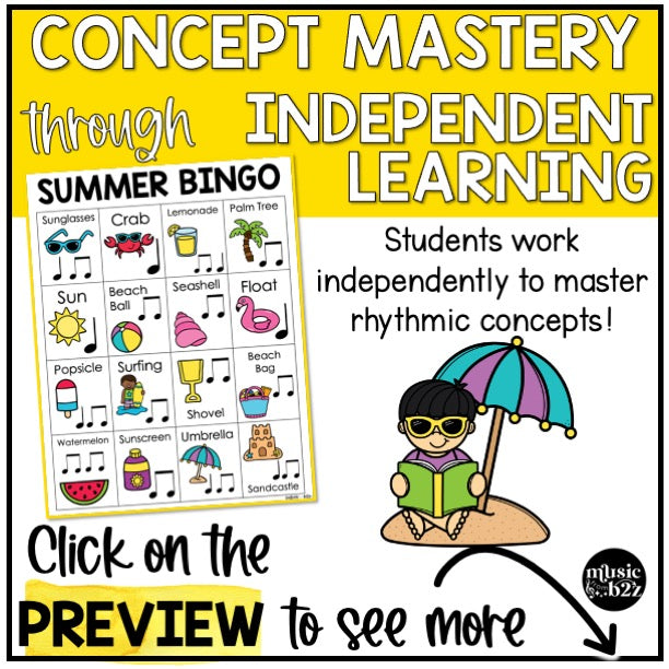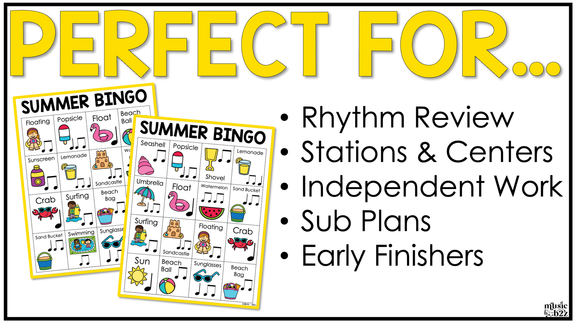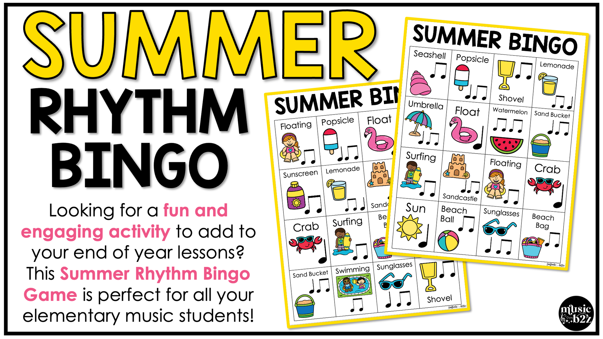 Summer is just around the corner, and it's the perfect time to add some sunny fun to your elementary music classroom! This Summer Music Bingo Game for Quarter & Eighth Notes is the perfect last-minute activity to keep your students engaged during your end of the year lessons! Use this game in centers, whole group, or even for sub plans!