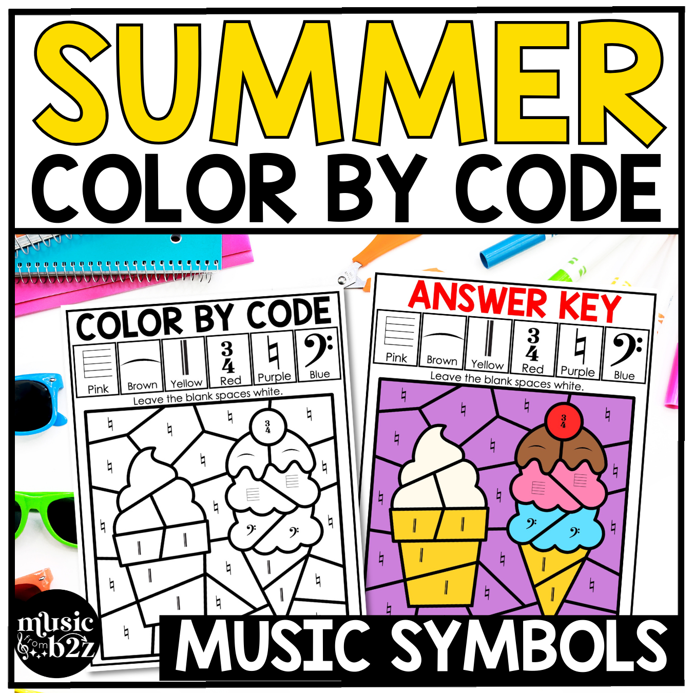 Teachers love how these music color by note pages save time while still reinforcing important concepts. The summer theme makes it exciting for students, while the coloring aspect keeps them focused and engaged.