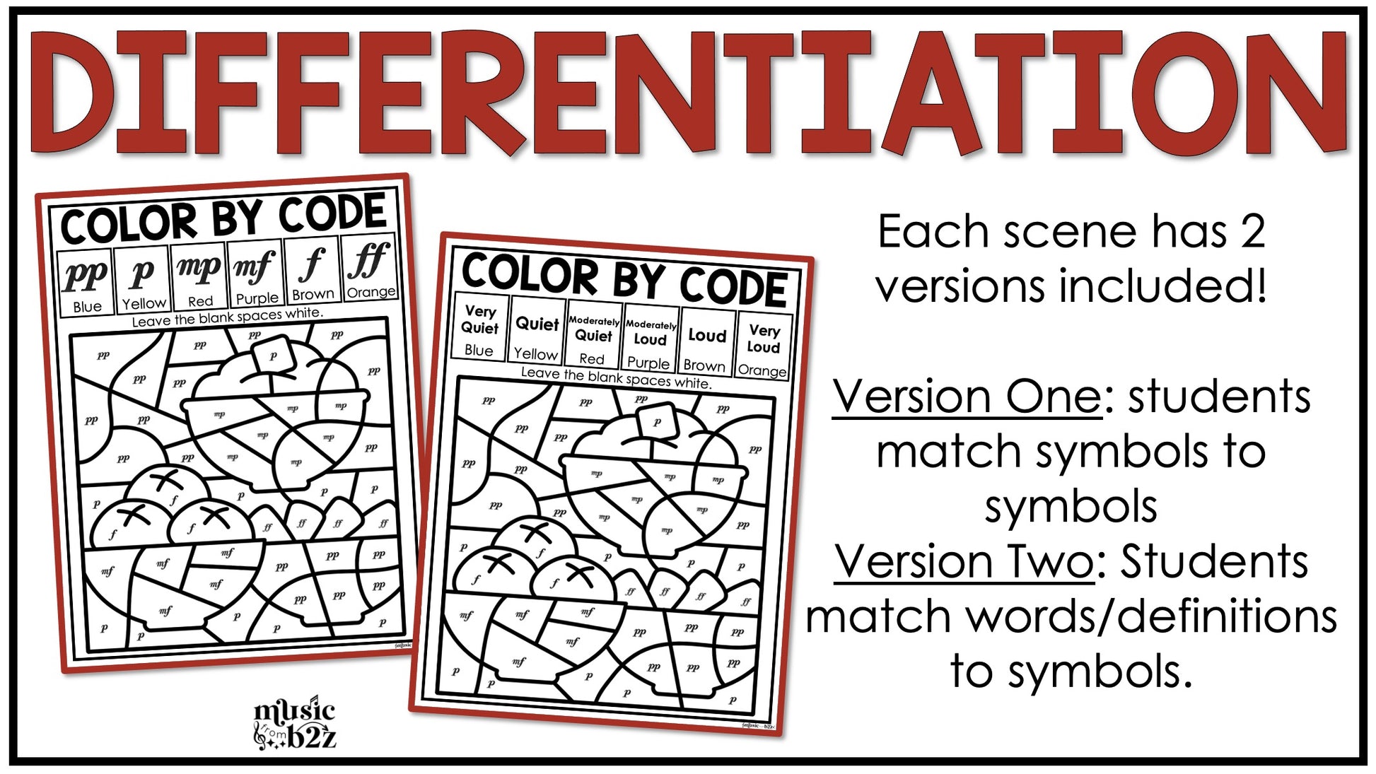 - Dynamics Color by Note Pages – review dynamic markings like p, mp, mf, f, crescendo, and decrescendo