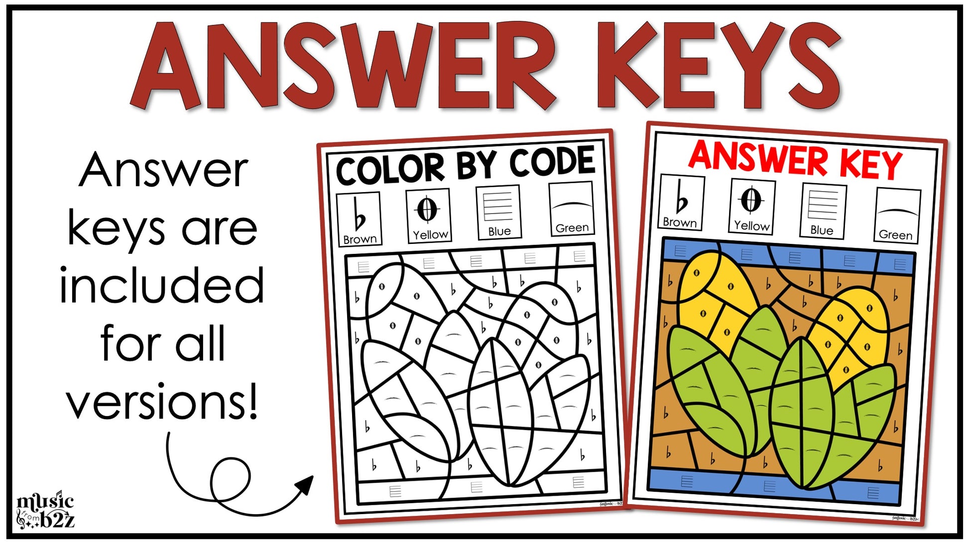 Make November lesson planning a breeze with this Thanksgiving Music Coloring Bundle! This set includes four different collections of color-by-code worksheets that cover rhythm, treble clef pitches, dynamics, and music symbols. Each page features a Thanksgiving-themed design that students bring to life by matching musical concepts to a color code. It’s the perfect combination of music coloring fun and meaningful practice.