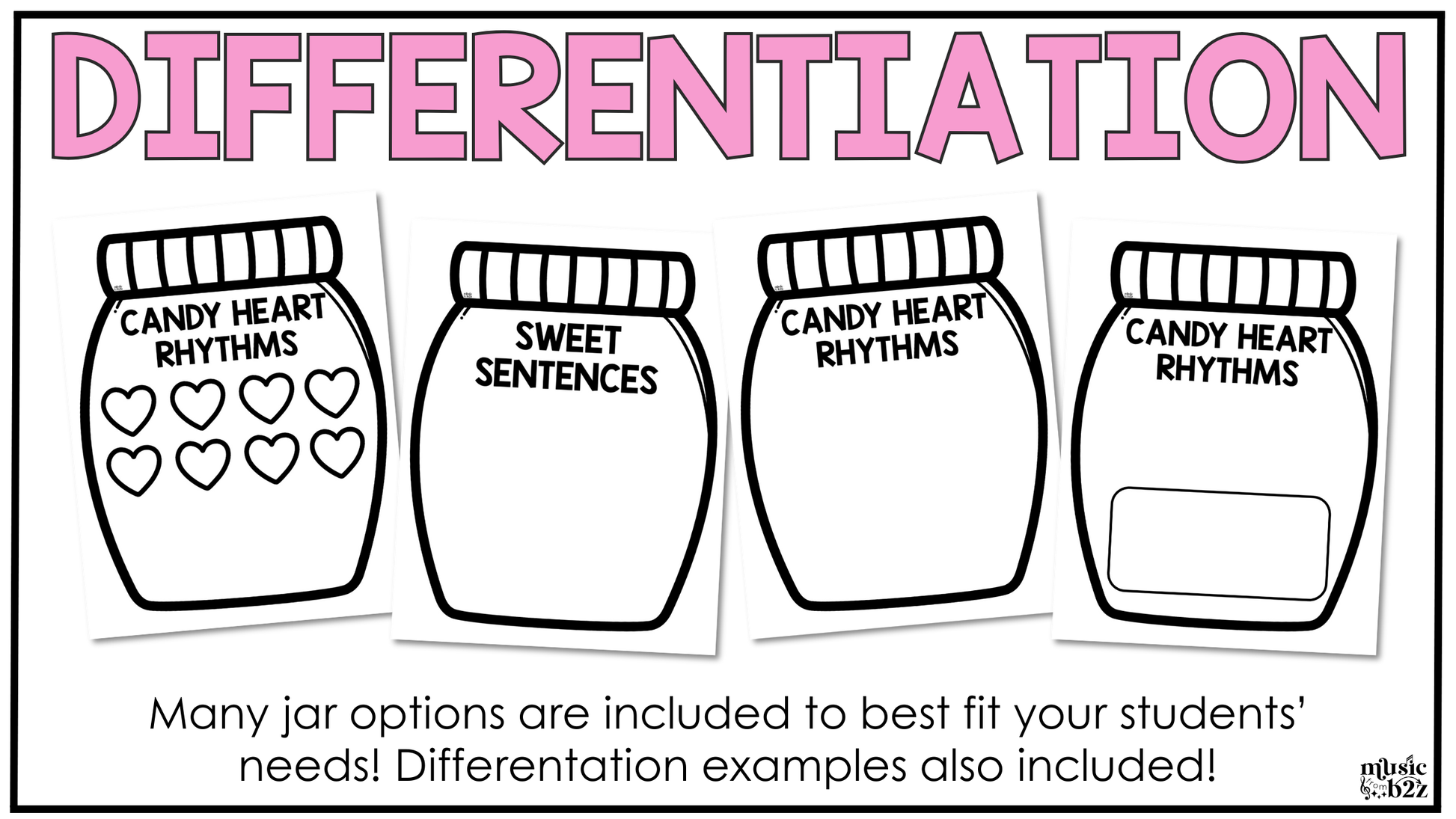 This Valentine music craft is not only an engaging classroom activity but also an excellent opportunity to showcase student work in a colorful and thematic display. Once students have completed their candy heart jars filled with various rhythm patterns, these creations can be arranged on a bulletin board or hallway display, transforming them into a vibrant Valentine's Day exhibit.