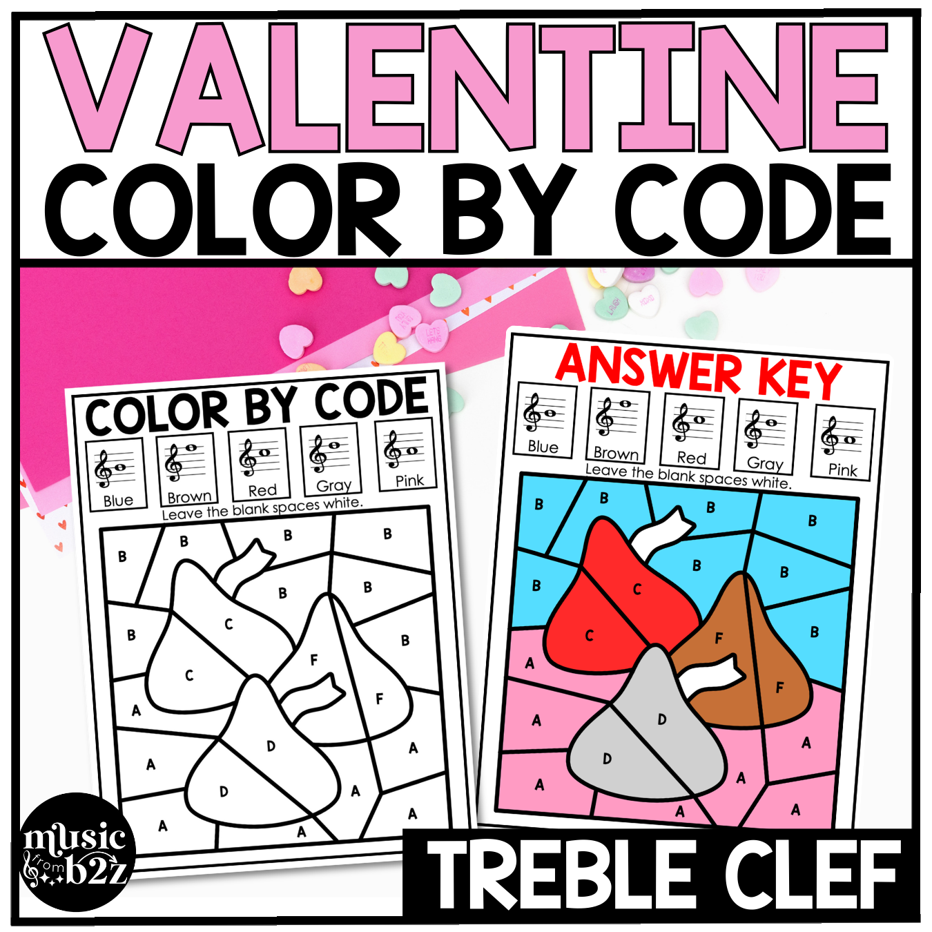 As students work through each music color by note page, they’ll match treble clef notes to the correct color. The finished product not only shows off a fun Valentine's Day picture but also gives you an easy way to check for pitch-reading accuracy.