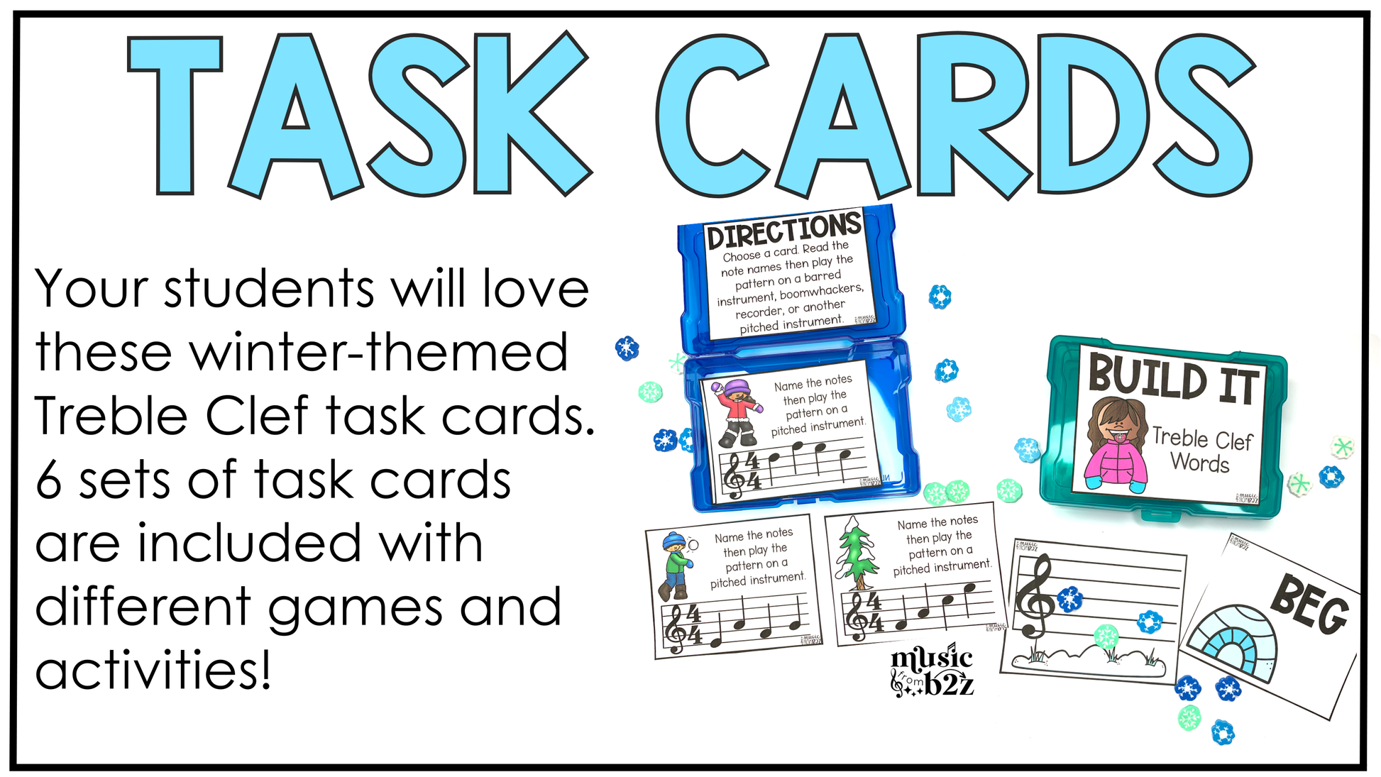 These winter-themed task cards give students repeated practice reading treble clef notes in a structured but flexible format. Use them in music centers, small groups, partner work, or as scoot activities. Recording sheets are included to turn the cards into easy-to-manage music worksheets.