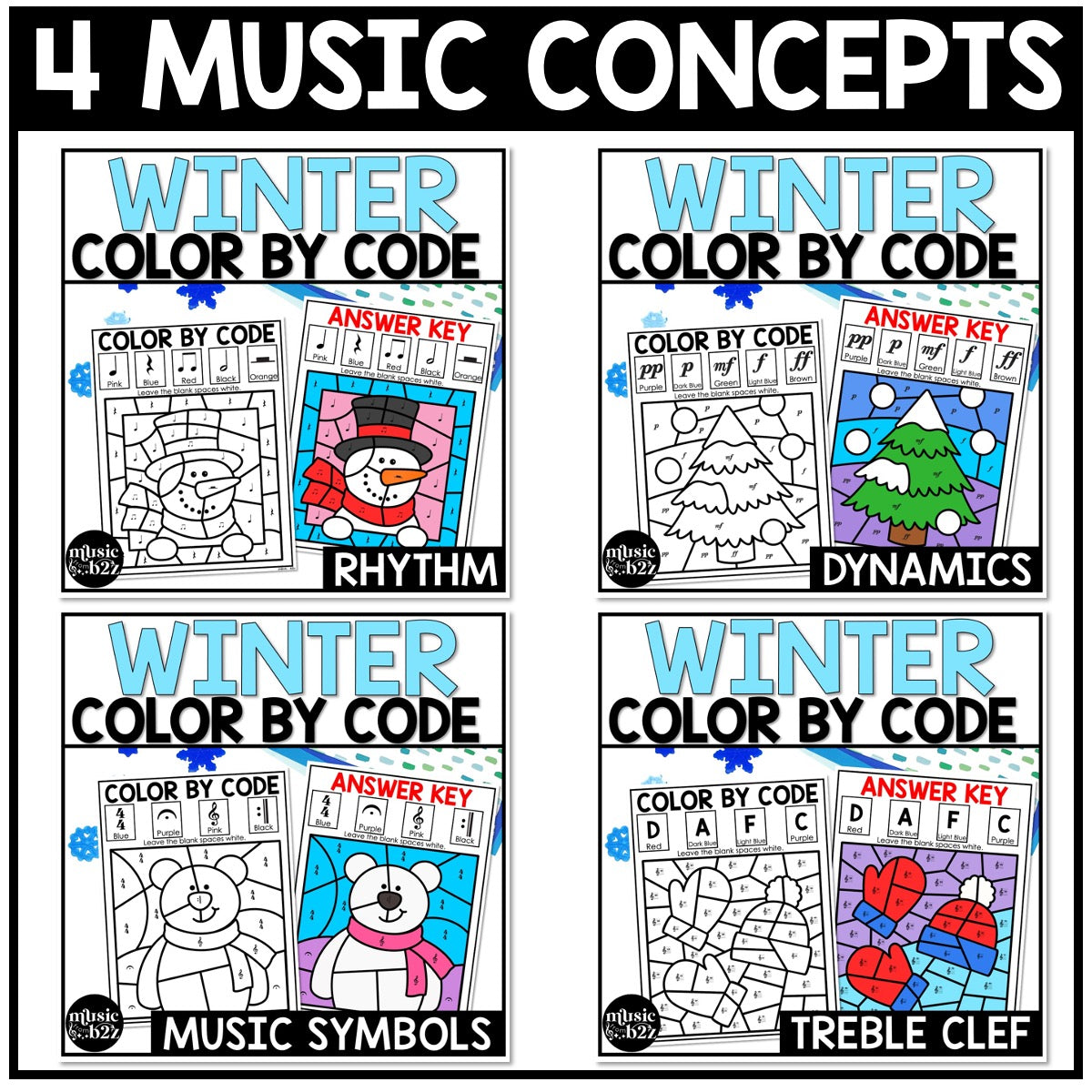 Winter Music Coloring BUNDLE Color by Note Winter Music Worksheets