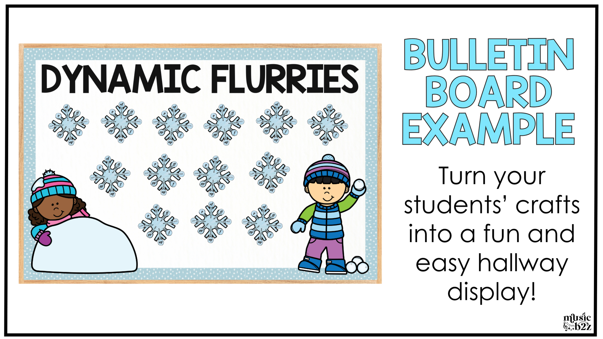 - Display finished crafts together to create a coordinated winter music bulletin board